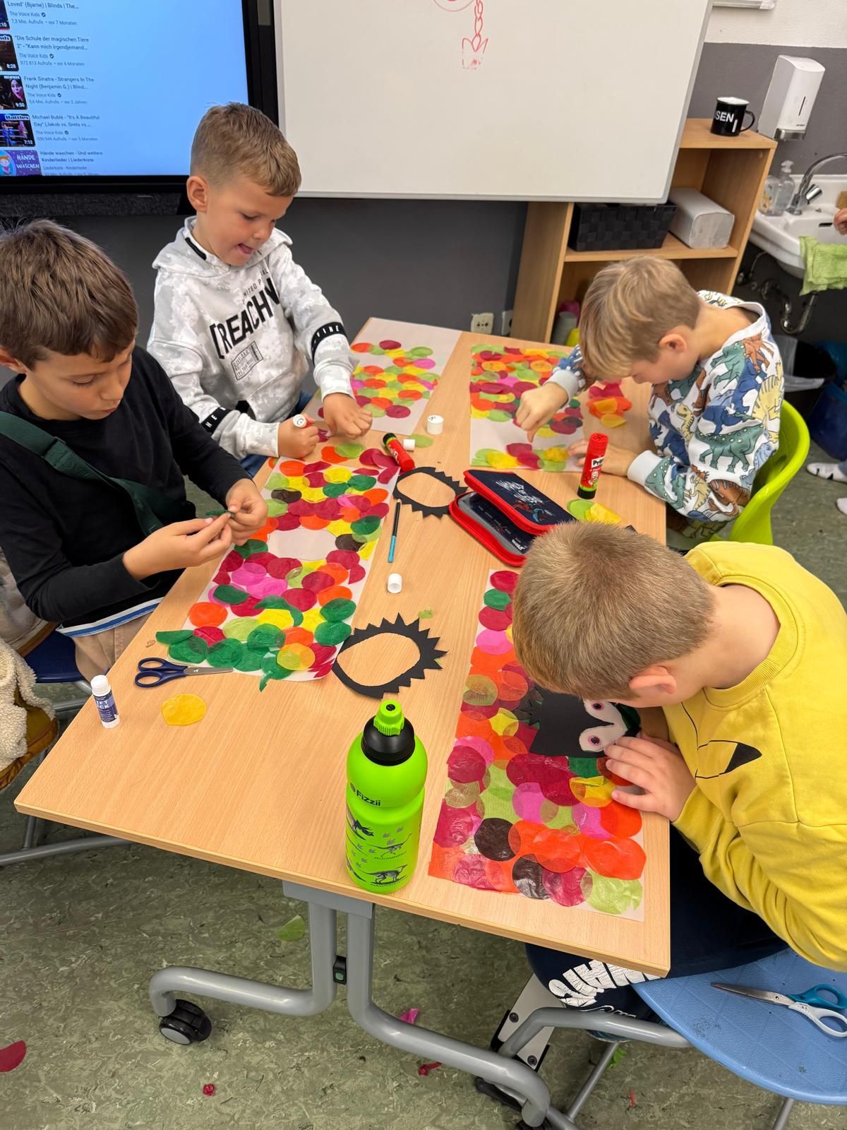 Damit konnte die Klasse 4a schon Mal erste Erfahrungen sammeln für ein größeres Graffiti-Projekt für die "Großen" an unserer Schule, welches Anfang Juni startet.