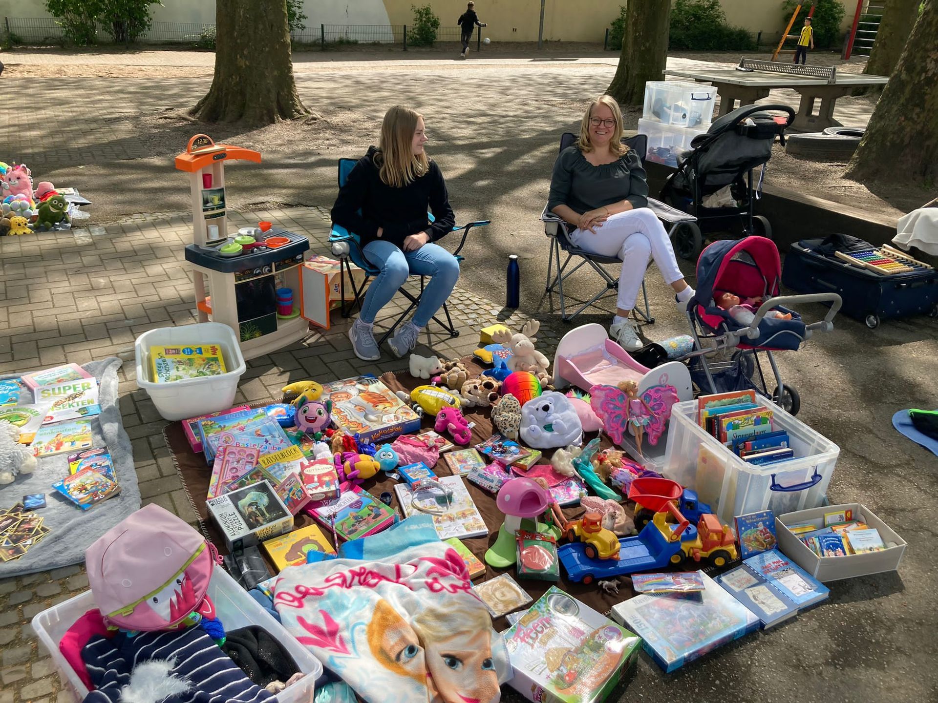 Bei bestem Wetter konnten die Kinder, unterstützt von ihren Eltern, ihr Spielzeug, ihre Bücher und vieles mehr verkaufen.