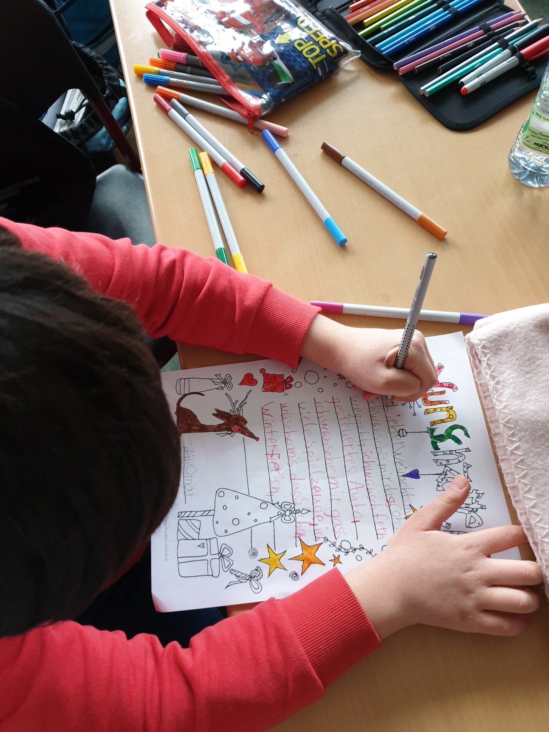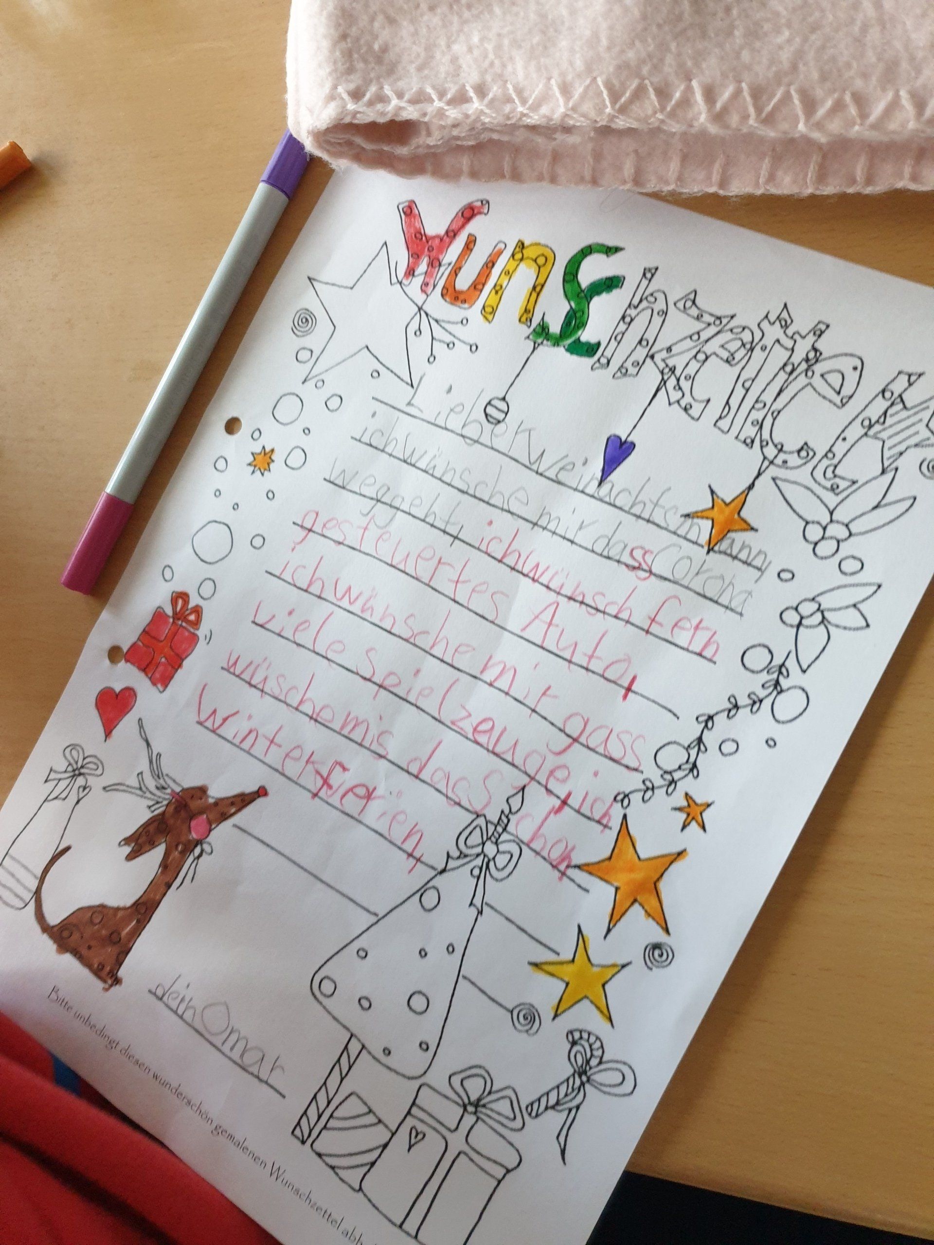 Im Advent haben wir außerdem ein kleines Adventmini bearbeitet. Das ist ein kleines Heft mit gemischten Aufgaben zum Thema Weihnachten. Darin haben wir zum Beispiel einen Wunschzettel geschrieben.