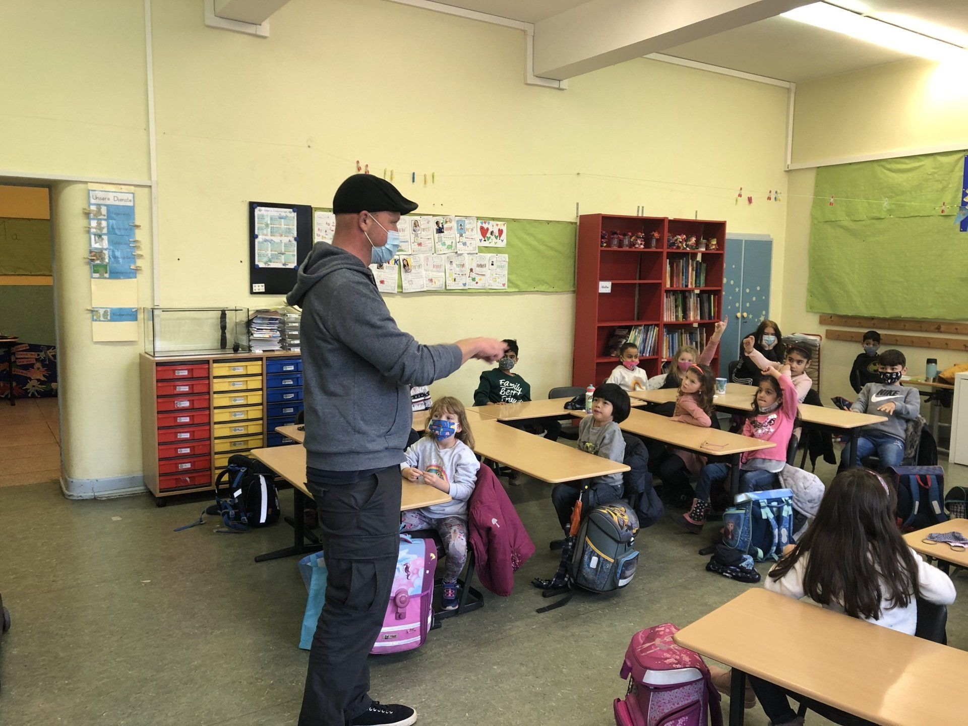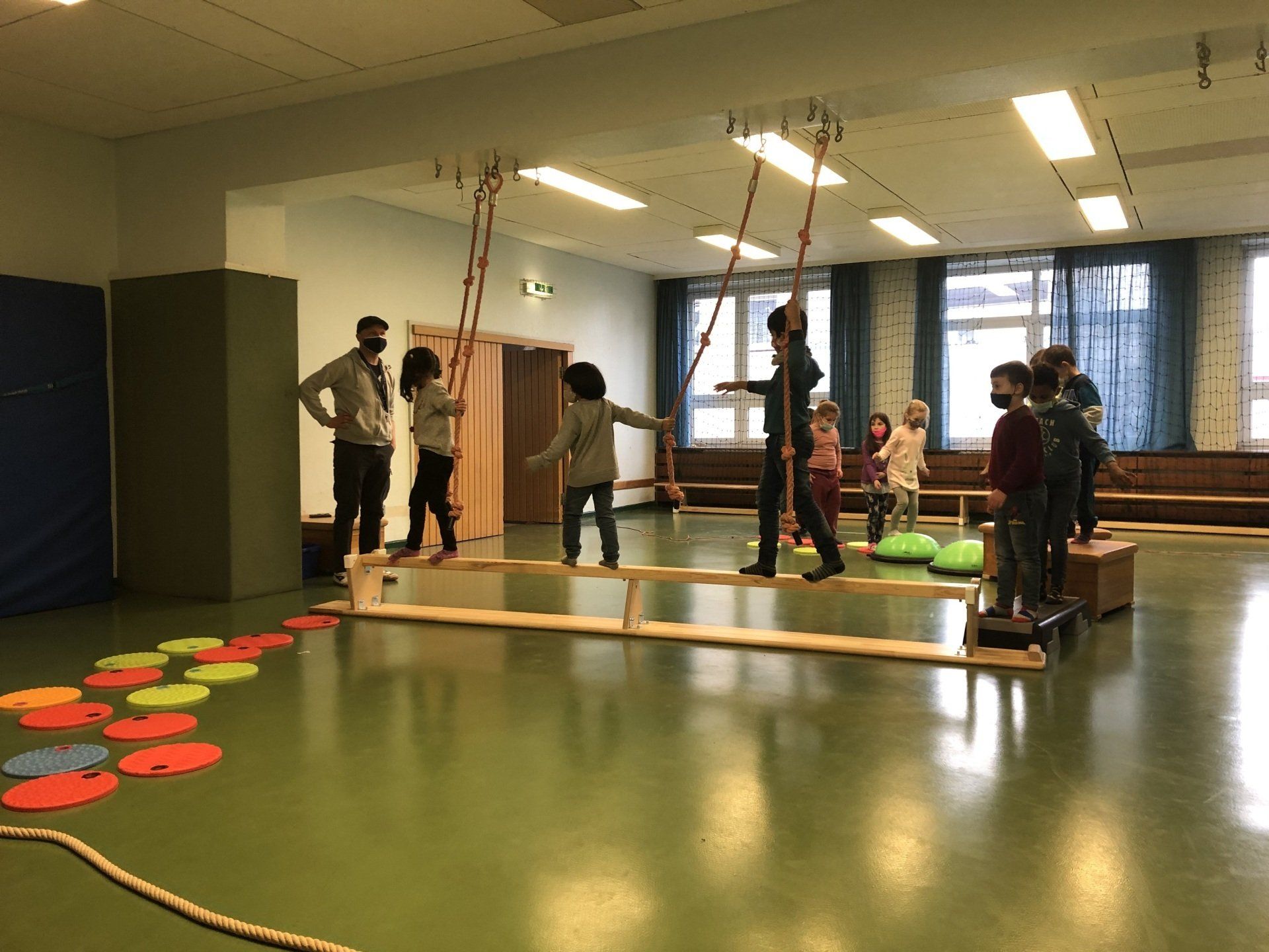 Herr Spellerberg macht mit uns weiter das Drachentraining. Wir haben einiges über Gefühle gelernt und wie man sie aus dem Gesicht ablesen kann. Das ist gar nicht so einfach mit Masken auf... Wir haben das in der Gymnastikhalle auch geübt und haben dort noch einen tollen Hindernislauf absolviert. Diesen kann man nur als ganze Klasse gewinnen, wenn alle zusammenhalten, alle ganz langsam laufen, einige helfen (nicht alle, sonst gibt es zu viel Gedrängel) und wenn alle aufeinander Rücksicht nehmen.
