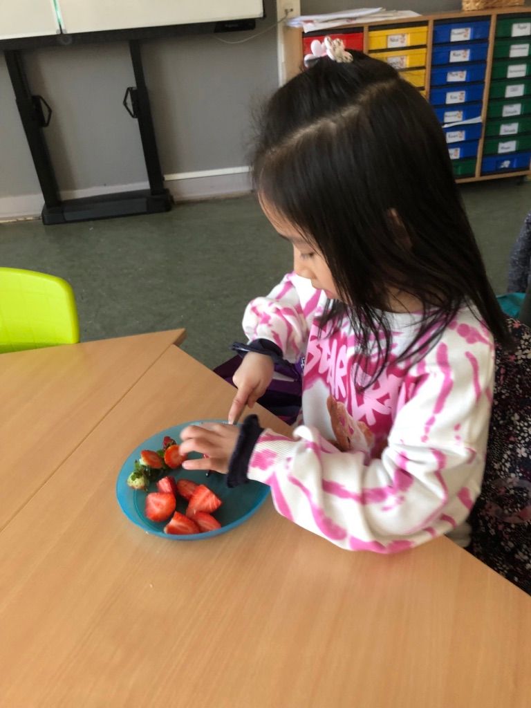 Am Mittwoch durften die Kinder das gekaufte Obst dann waschen, schneiden und in Schalen füllen.