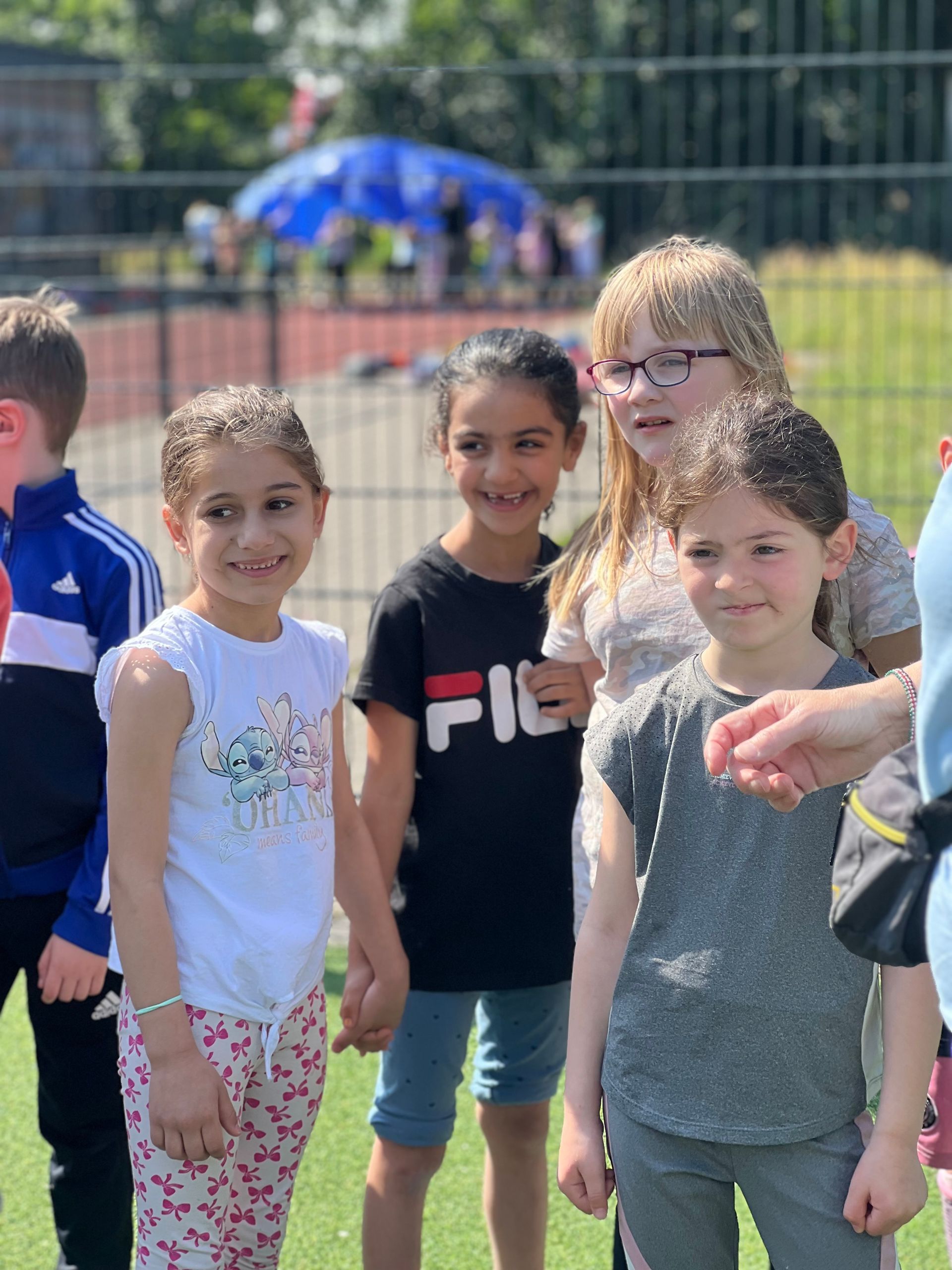 Am Freitag kam Herr Vorholt vom Knapp´n-Report und fotografierte uns. Anschließend spielten wir mit Frau Späh und Frau Winbeck auf dem Schulhof Kennenlernspiele. Das war lustig.