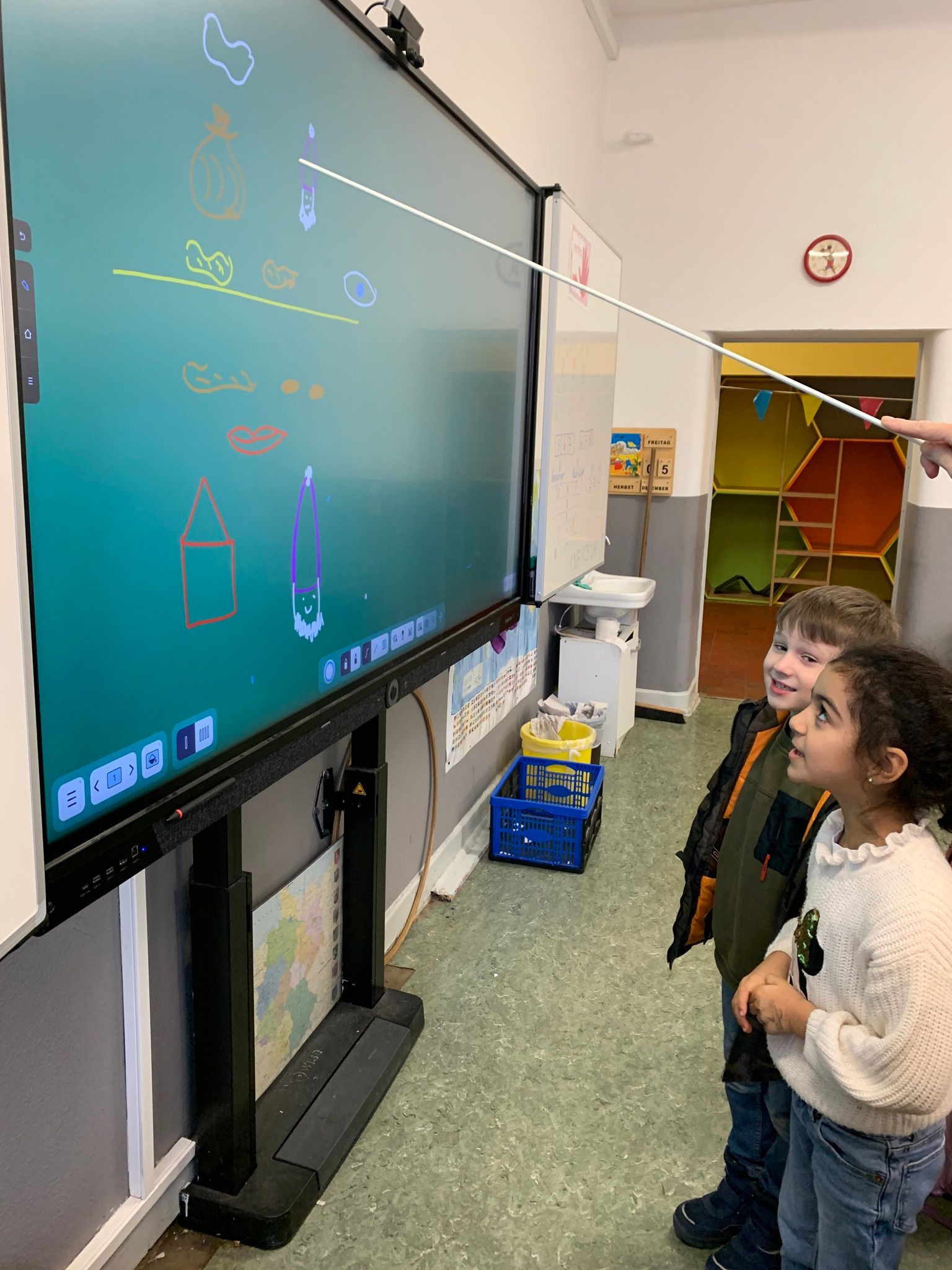 Bevor wir am 16.08.2023 im Deutsch-Arbeitsheft arbeiteten, übten wir die Aufgaben an der digitalen Tafel. Nach so viel Anstrengung tanzten wir danach den Schubidua-Tanz.