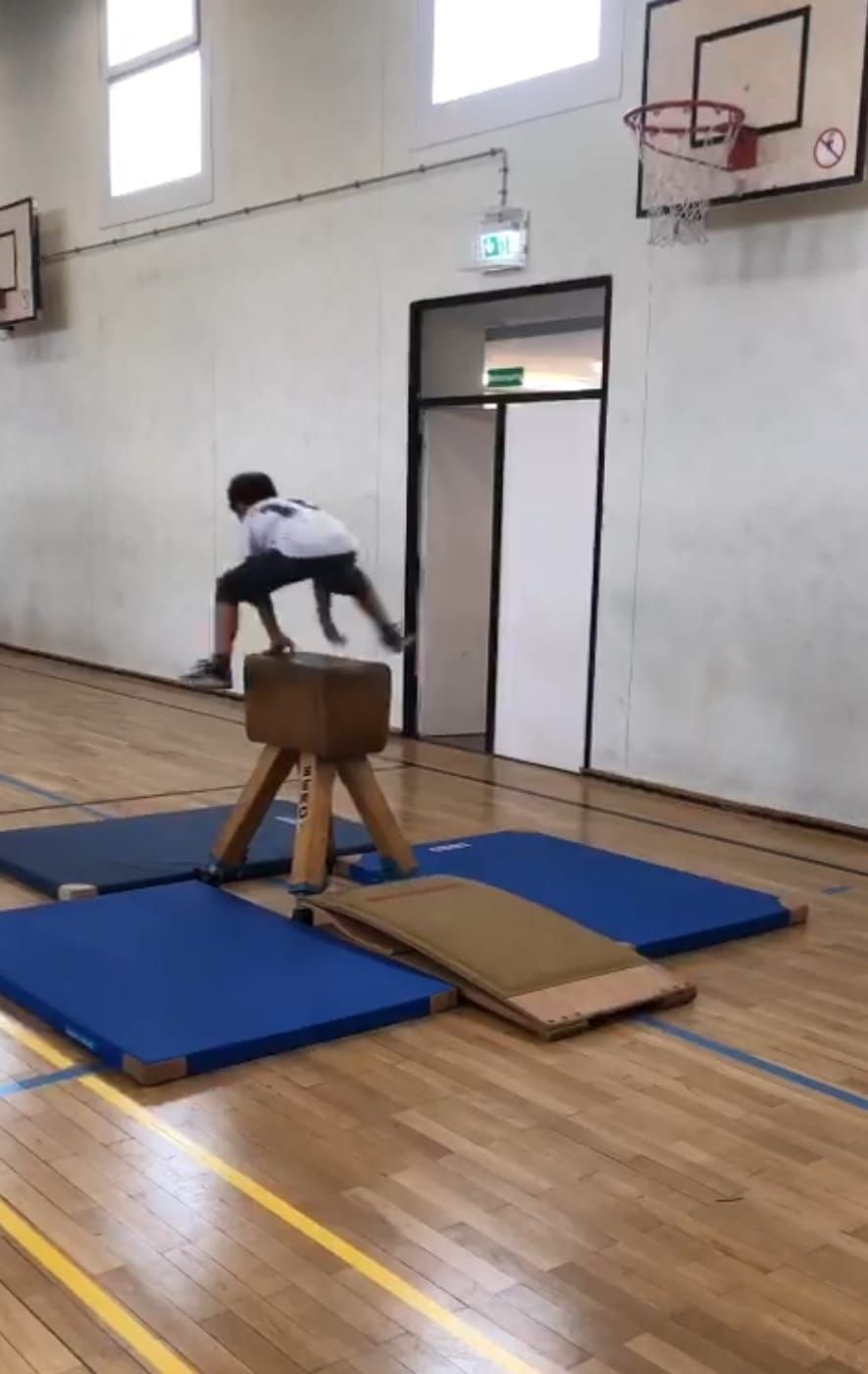 Am Freitag im Sportunterricht durchliefen wir zum ersten Mal einen Hindernisparcours. Mit viel Spaß und Zuversicht wagten wir uns an das Klettern, Schwingen, Springen, Slalom laufen, Balancieren, Überwinden und sogar an einen Bocksprung. Demnächst absolvieren wir unseren Geräteführerschein.
