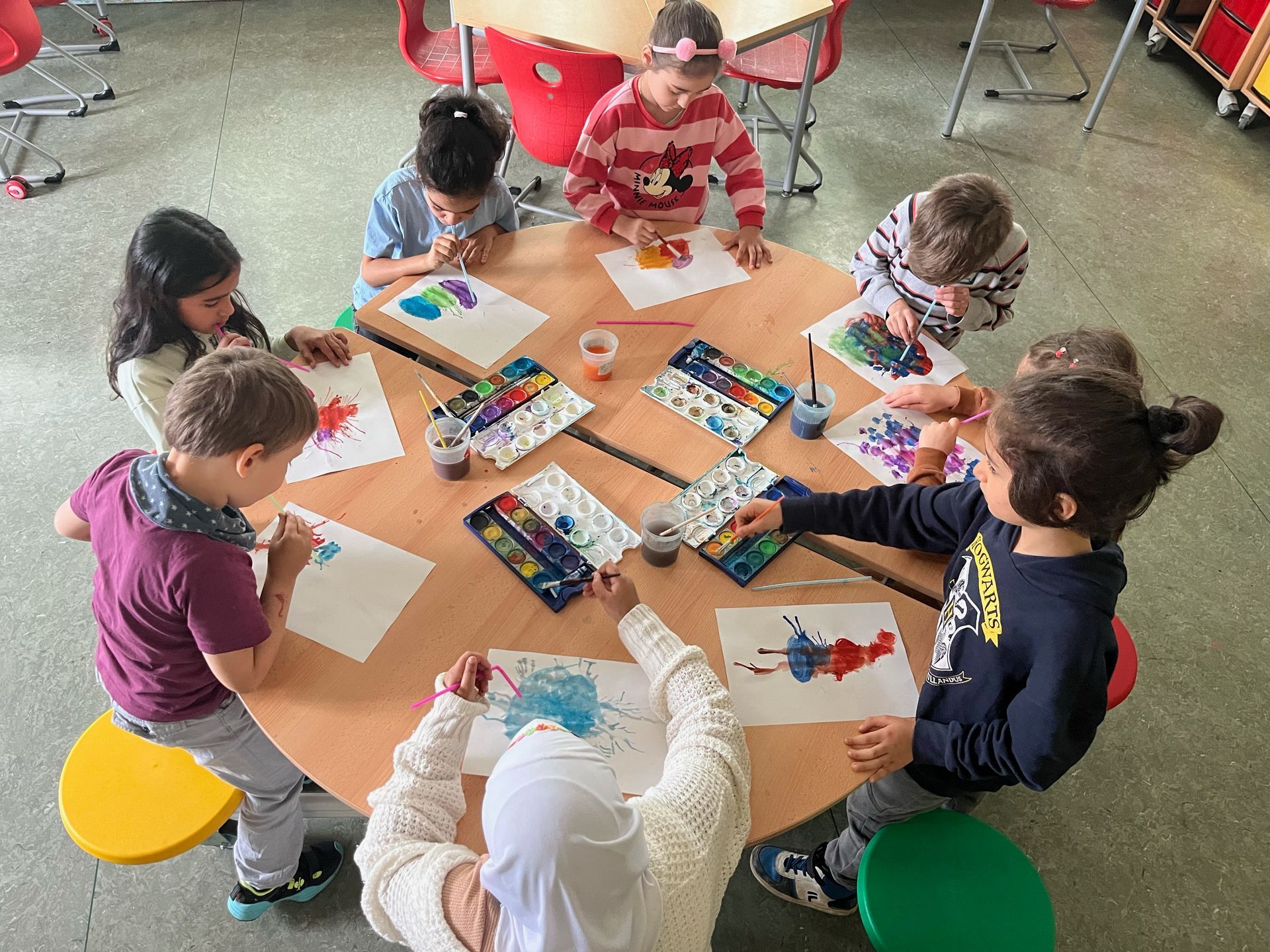 Dieses Projekt hat uns viel Spaß gemacht. In der Regel dürfen wir ja sonst nicht mit den Händen malen und sogar mit Farbe herumspritzen.