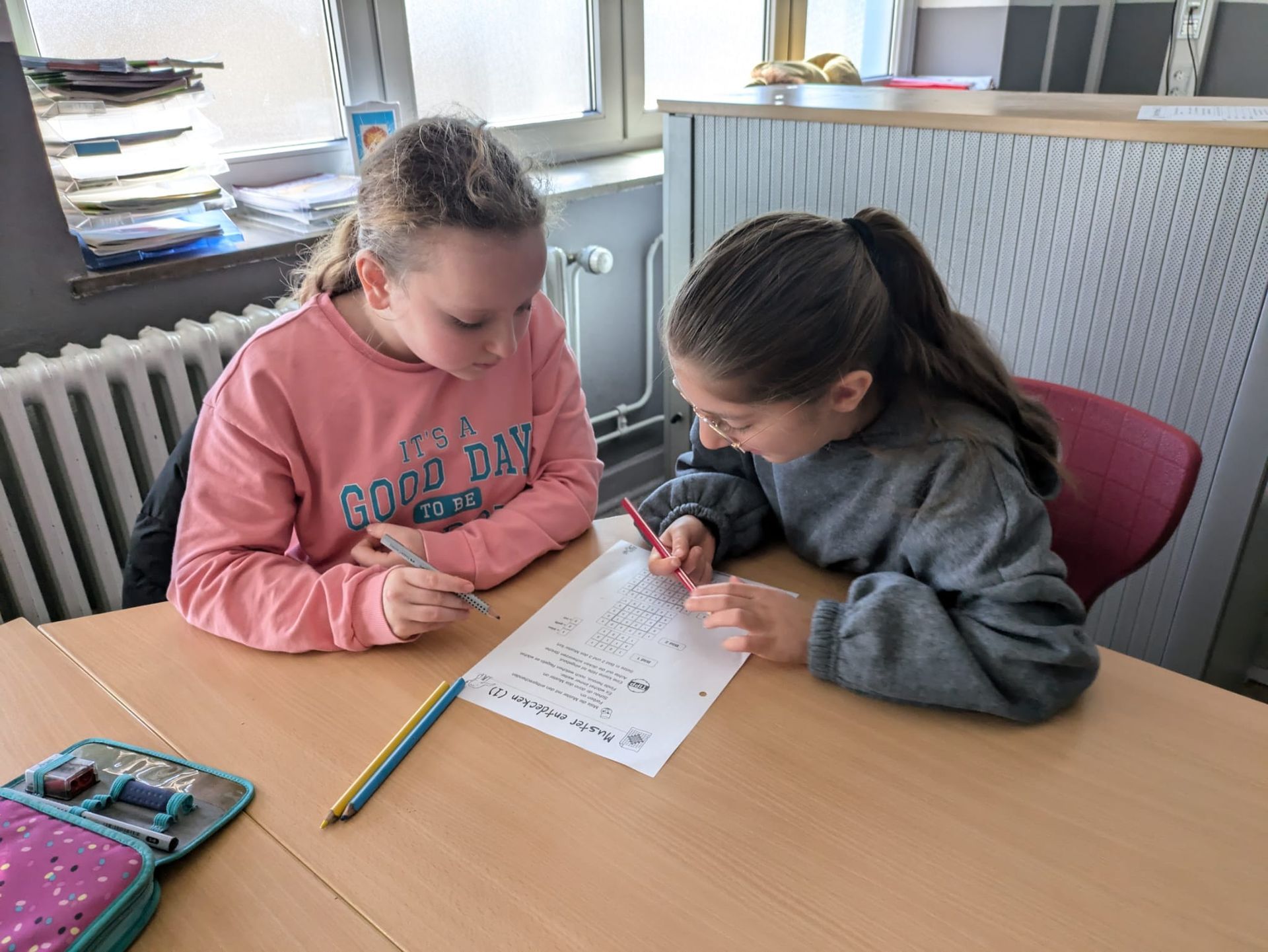 Heute im Deutschunterricht haben wir uns mit Personenbeschreibungen beschäftigt. In Partner- und Gruppenarbeit suchten wir eifrig nach passenden Adjektiven. Die Atmosphäre war lebhaft, und es war schön zu sehen, wie kreativ alle waren. Am Ende präsentierten wir unsere Ergebnisse, und es war toll, die Ideen der anderen zu hören.