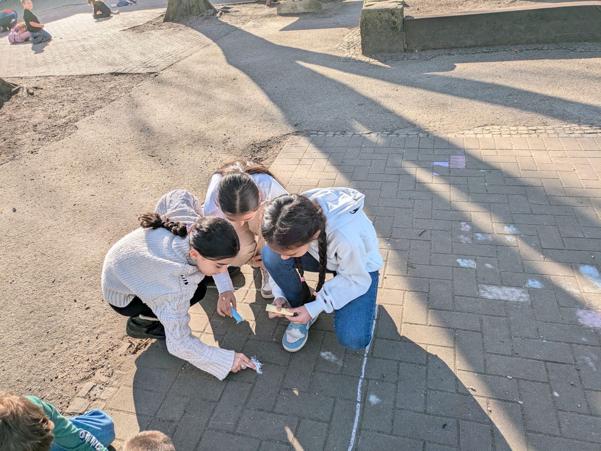 Auch der Schulhof wurde zur kreativen Bühne: Mit bunter Kreide gestalteten die Schüler eigene Muster auf den Boden und brachten damit ihre Ideen spielerisch zum Ausdruck.