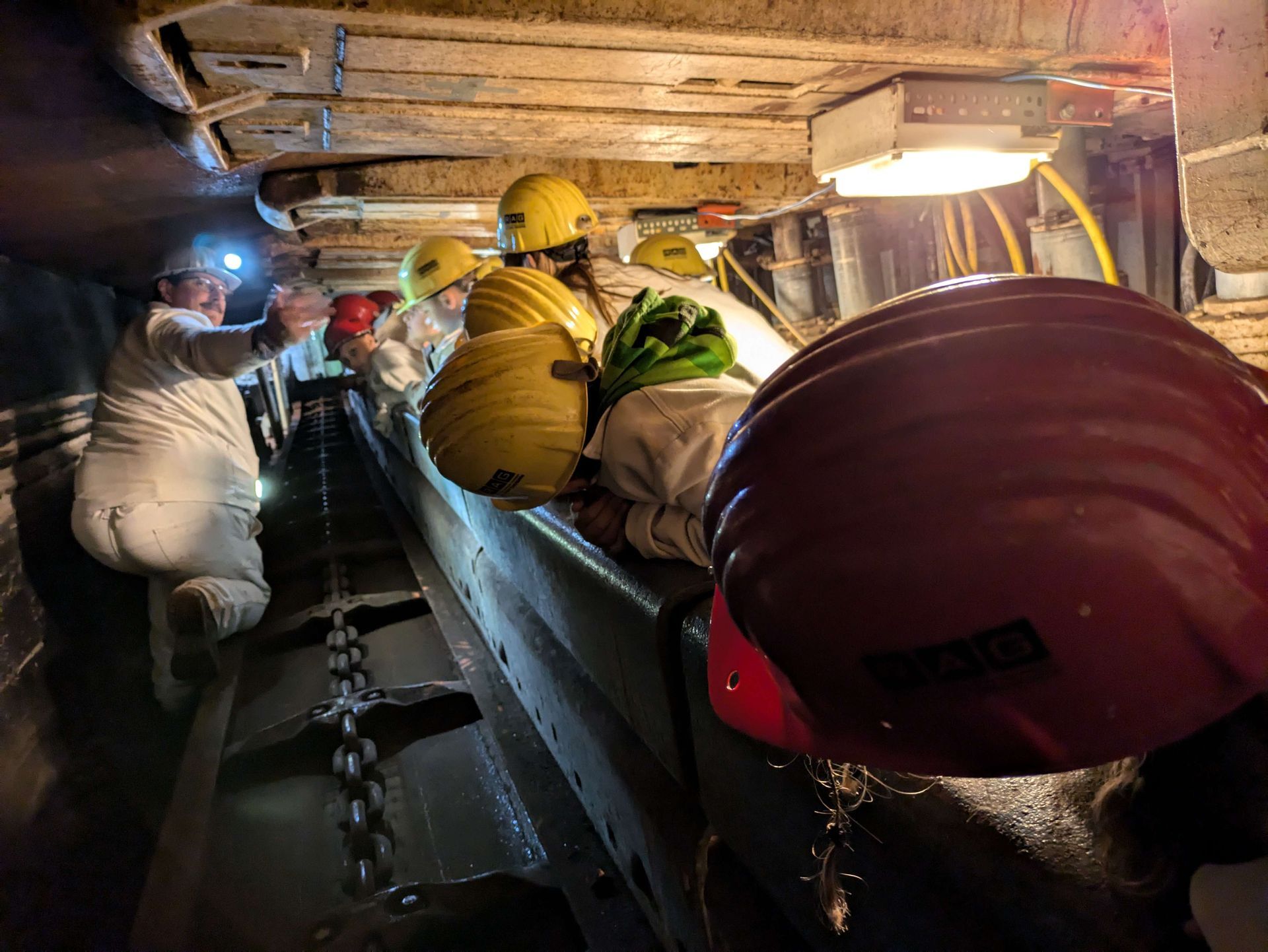Wir durften uns sogar selbst kleiden wie ein Bergmann und dann ging es los. „Unter Tage“ haben wir viele Maschinen gesehen und einige durften wir sogar ausprobieren, sind durch niedrige Gänge geklettert und haben den „guten Geist“ getroffen. Dabei konnten wir unseren Bergmann alles Fragen.