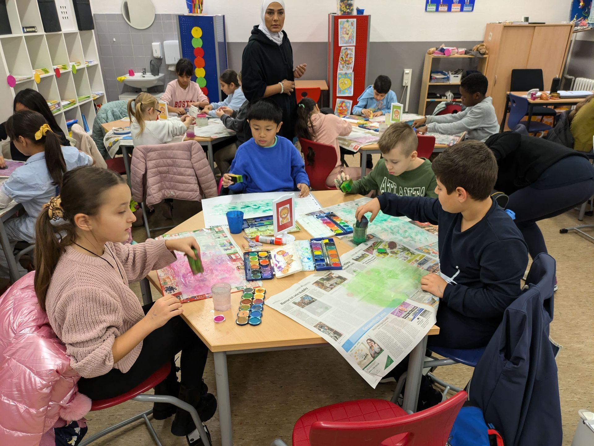 Im Rahmen ihrer Projektwoche hatten wir das große Vergnügen, Schüler der 9. Klasse vom Heinrich-Heine-Gymnasium in unserer Klasse willkommen zu heißen. Gemeinsam haben wir eine kreative Bastelaktion durchgeführt, die uns allen viel Freude bereitet hat.