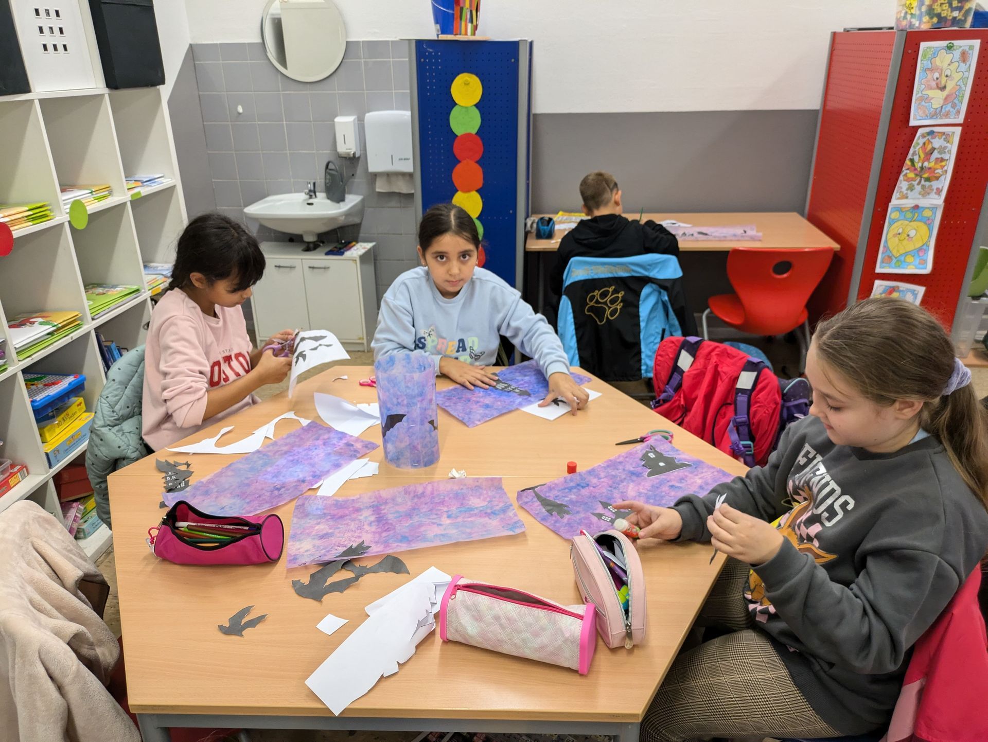 Bastelaktion in der 3a mit Schülern vom Heinrich-Heine-Gymnasium 09.10.2024