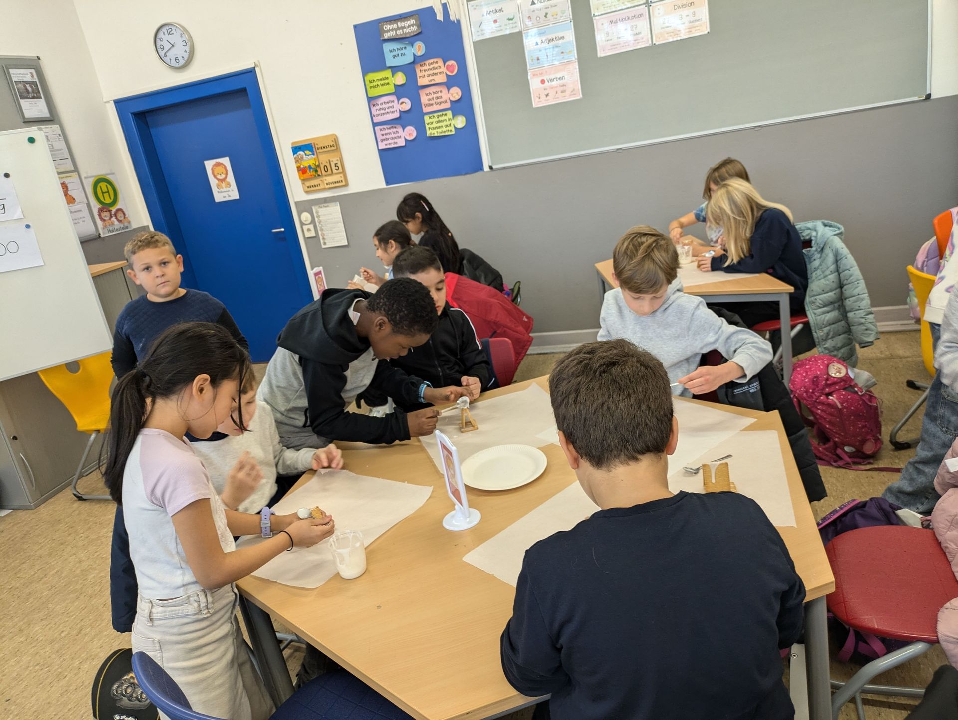Am Ende der Bastelaktion haben wir gemeinsam aufgeräumt und noch eine kleine Pause zusammen verbracht. Leider mussten wir uns dann von den "großen" Schülern verabschieden, aber wir hoffen sehr, dass sie bald wieder zu uns kommen. Es war ein toller Vormittag, der uns allen viel Freude bereitet hat!