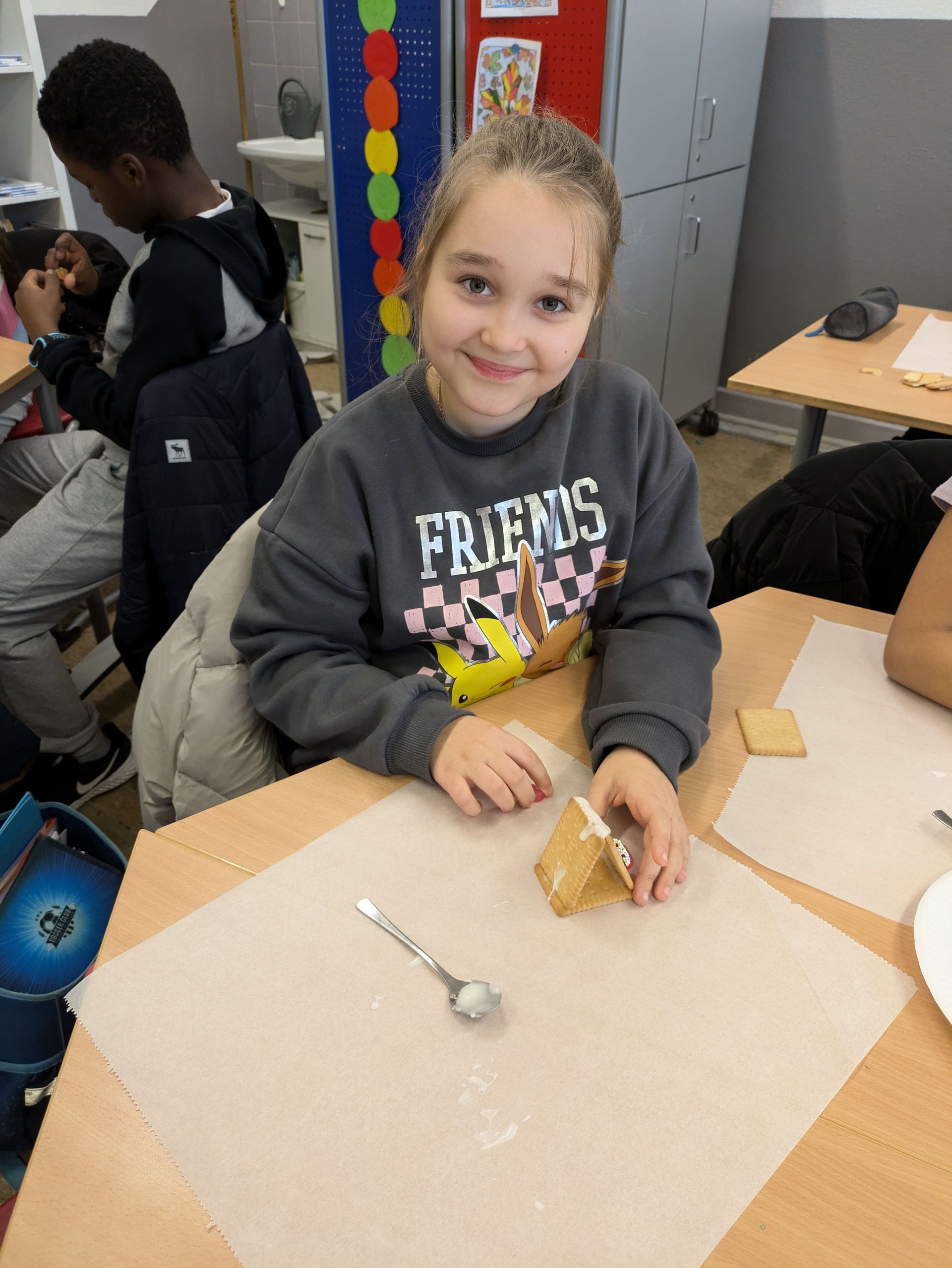 In Vorfreude auf den Sankt Martinsbasar haben wir gemeinsam kleine Häuser aus Butterkeksen gebastelt. Jedes Haus wurde liebevoll mit bunten Süßigkeiten.