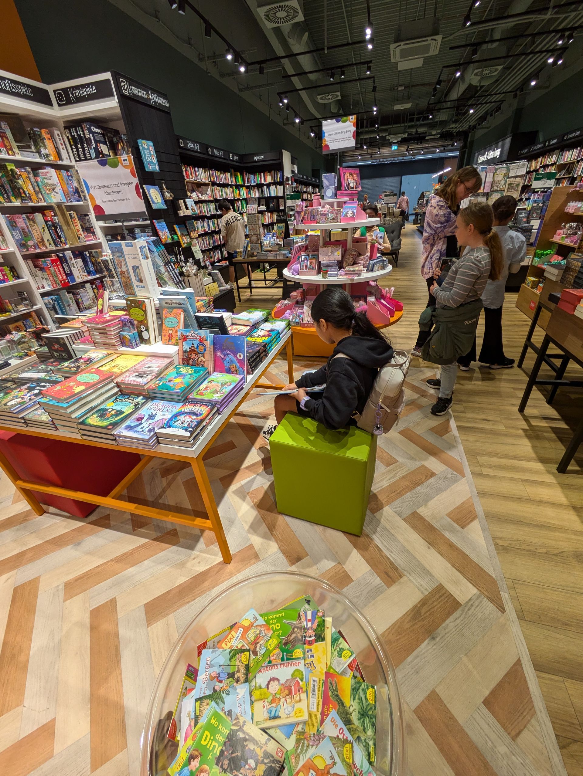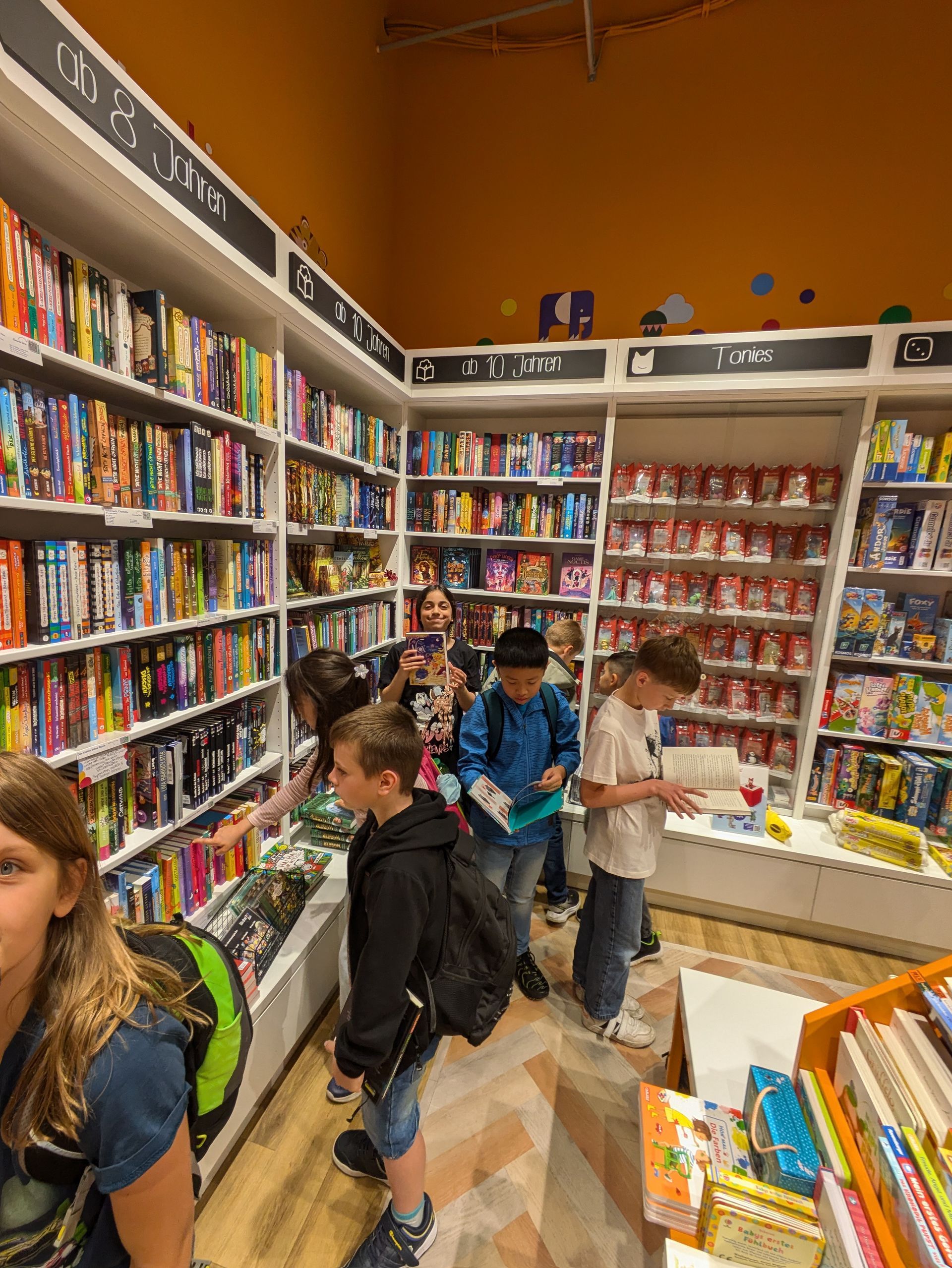 Mit herzlicher Begrüßung begann unser Abenteuer: Zuerst erhielten wir spannende Einblicke in die Welt des Buchhandels – wie funktioniert ein Buchladen, welche Geschichten warten darauf, entdeckt zu werden? Dann kam der Höhepunkt: Jeder durfte sein eigenes Buch aussuchen und mitnehmen! Eine Entscheidung, die nicht leicht fiel, denn so viele wunderbare Bücher wollten entdeckt werden.