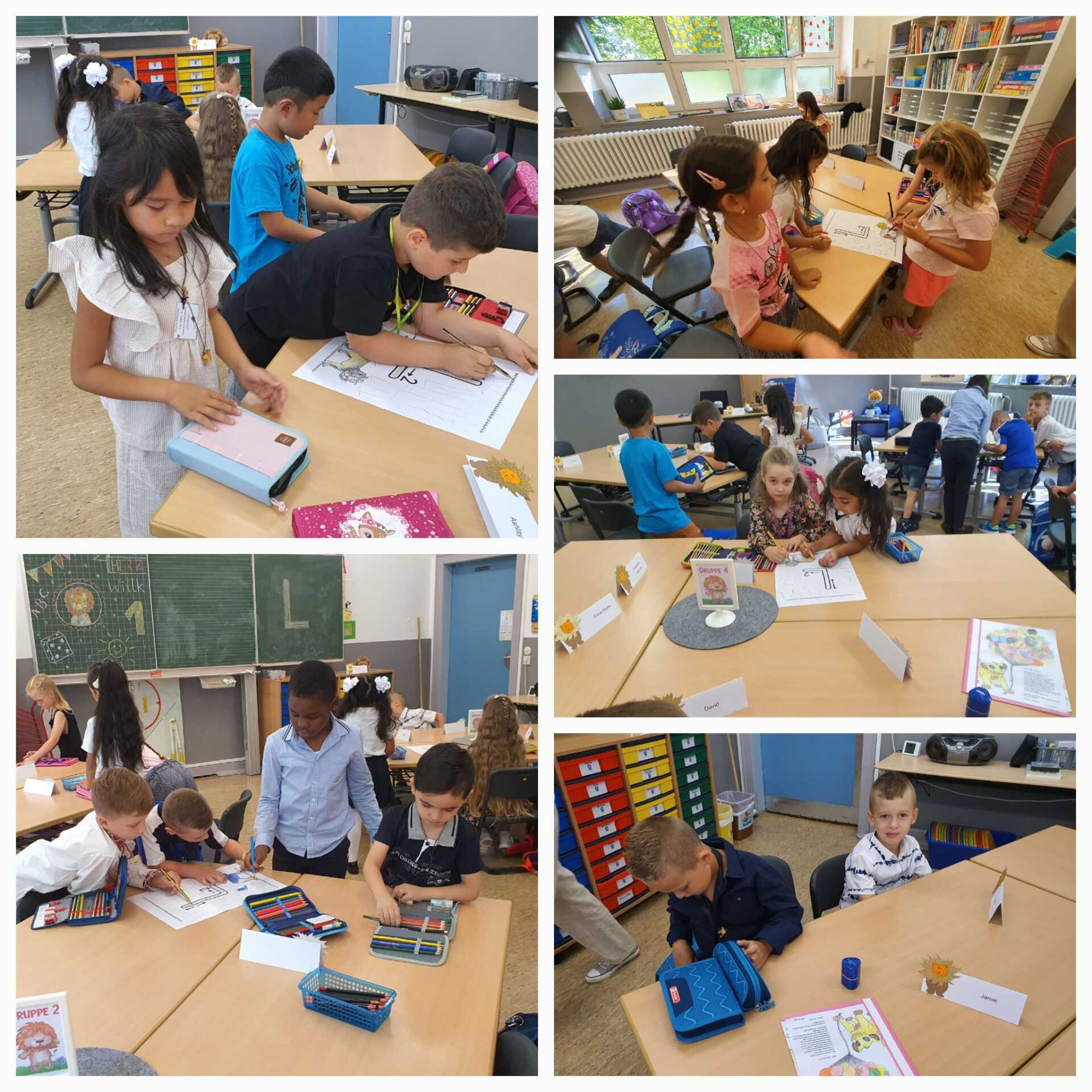 Nun haben wir schon einige Tage in unserer Löwenklasse gelernt. Auch das Tablet durften wir schon ausprobieren, aber das war soooo aufregend, dass wir vergessen haben Fotos zu machen. Das holen wir aber nach. Unsere Buchstaben und Zahlen haben wir an der Tafel, auf dem Rücken des Nachbarn/-in geschrieben und geknetet haben wir sie auch, das hat viel Spaß gemacht.