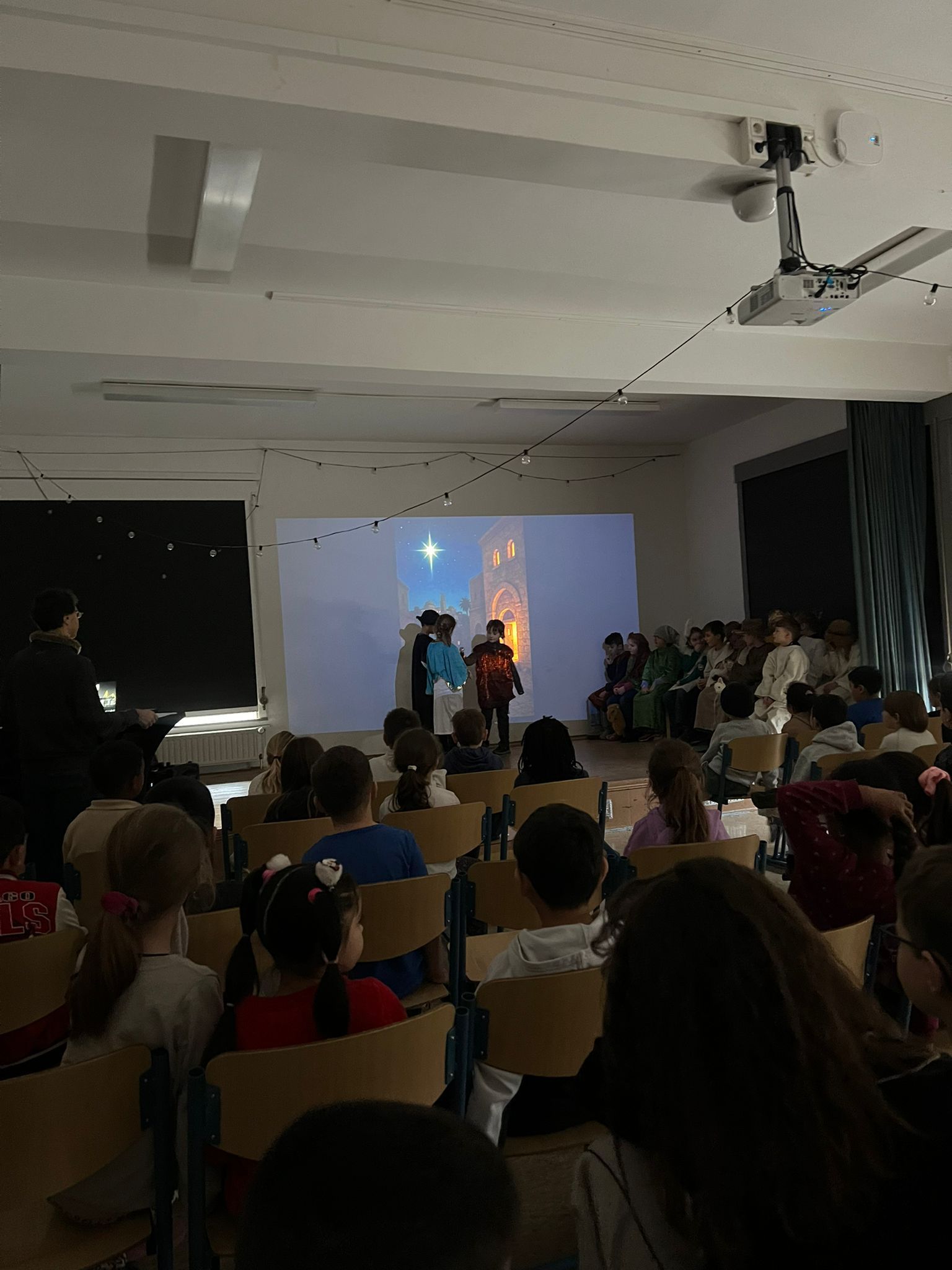 Die Flure und die Klassen sind weihnachtlich geschmückt, wir treffen uns jeden Montag zum gemeinsamen Singen und unsere 3. Klassen haben wieder ein Krippenspiel einstudiert.