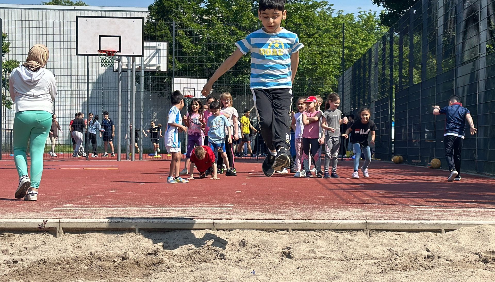 Am Freitag im Sportunterricht durchliefen wir zum ersten Mal einen Hindernisparcours. Mit viel Spaß und Zuversicht wagten wir uns an das Klettern, Schwingen, Springen, Slalom laufen, Balancieren, Überwinden und sogar an einen Bocksprung. Demnächst absolvieren wir unseren Geräteführerschein.