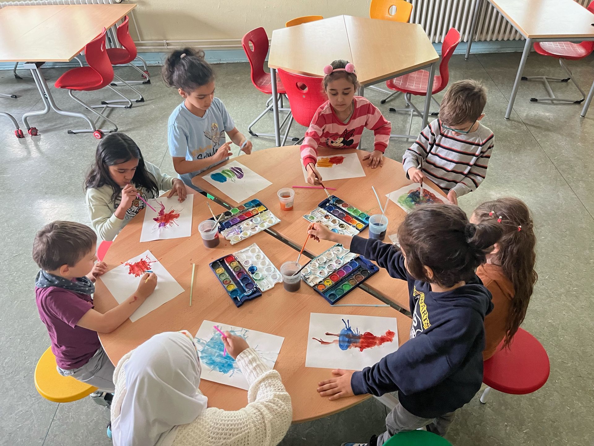 Dieses Projekt hat uns viel Spaß gemacht. In der Regel dürfen wir ja sonst nicht mit den Händen malen und sogar mit Farbe herumspritzen.