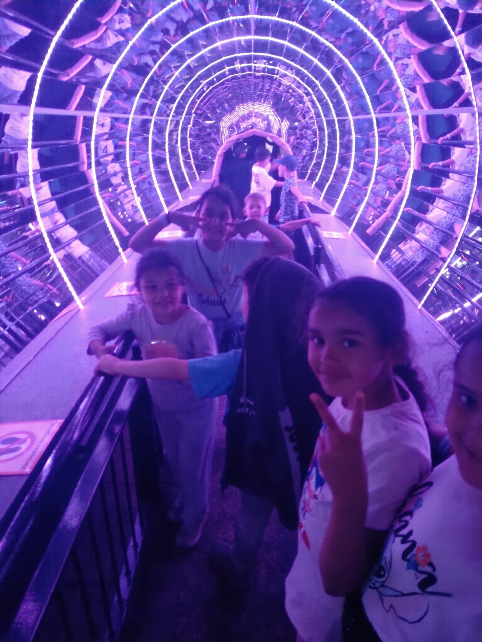 Ein ganz besonderes Highlight war das Partyflugzeug mit der Rutsche. Im Flugzeug war es dunkel, an den Wänden leuchteten bunte Lichter, und es lief Musik. Das war richtig cool! Danach waren wir noch auf der Hüpfburg und haben uns nochmal so richtig ausgepowert.