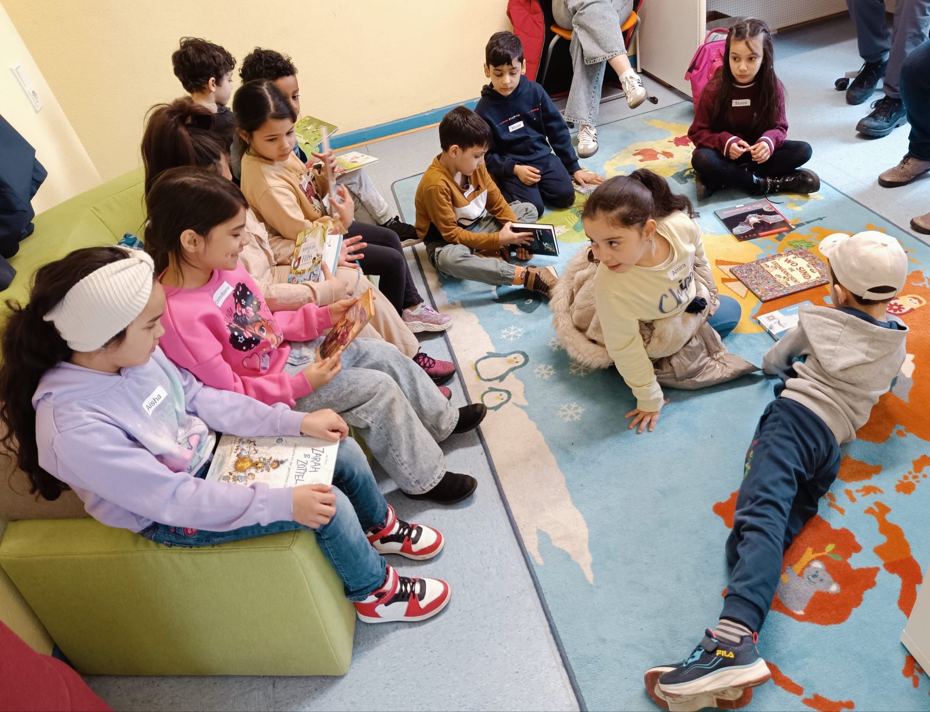 Am 14. Februar 2025 haben wir zum ersten Mal die Schulbücherei besucht. Uns wurde die Geschichte "Henri der Bücherdieb" von Emily MacKenzie vorgelesen. Anschließend haben wir zwischen den Büchern nach Lesezeichen gesucht und uns diese Bücher genauer angeschaut. Wir haben erfahren, dass es verschiedene Bücherarten gibt.