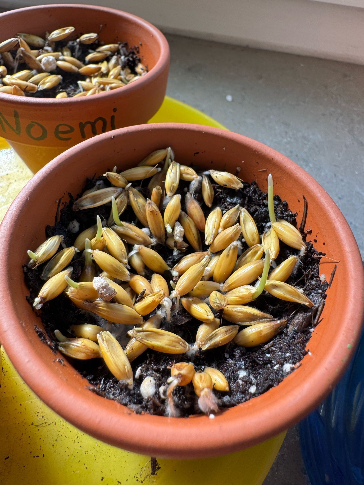 Das Katzengras wächst hervorragend und zeigt den Kindern eindrucksvoll, wie sich Natur entwickelt.