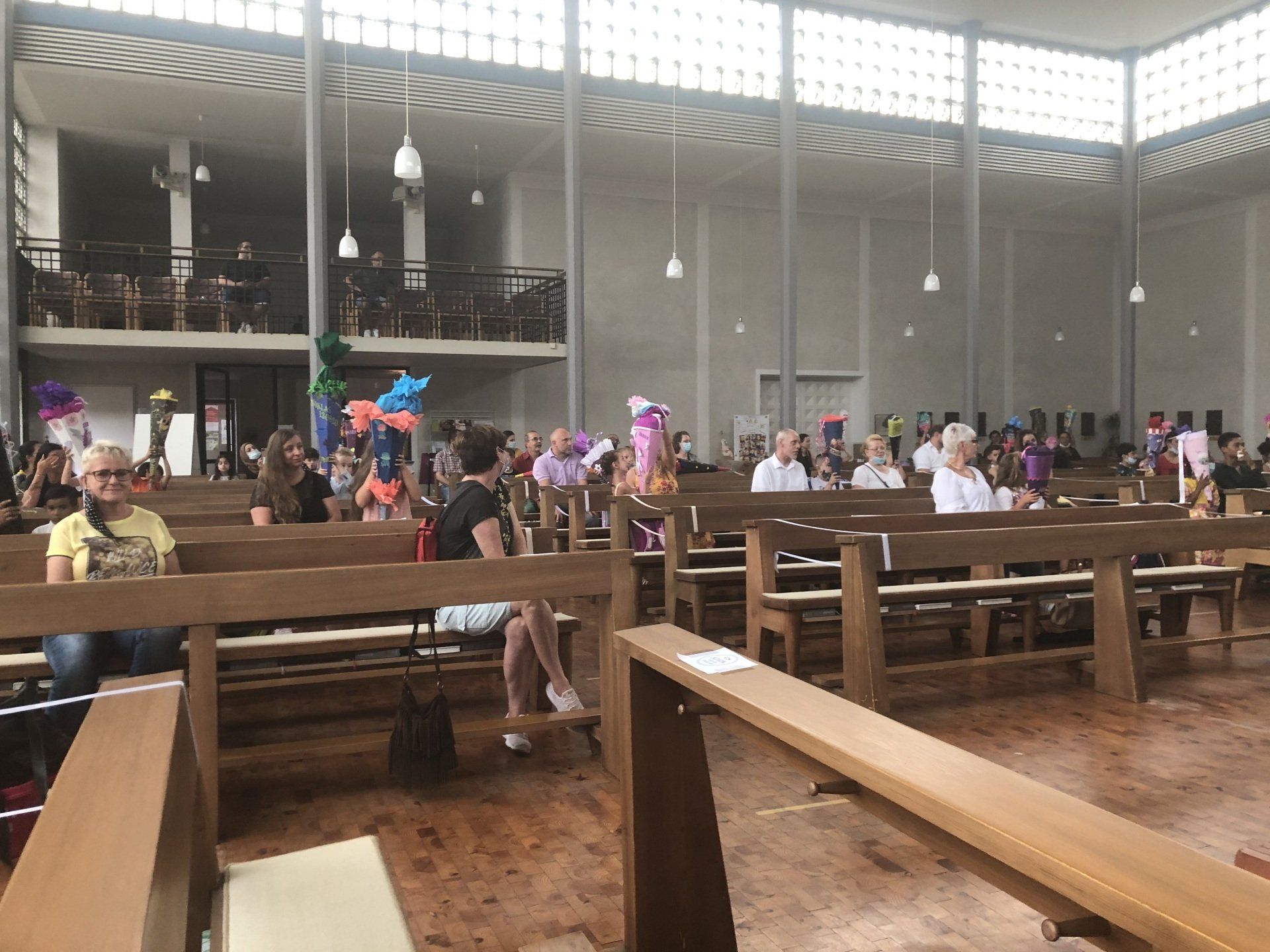 Ganz aufgeregt standen wir am 13.8. mit unseren Eltern und unseren riesigen Schultüten vor der Kirche. Unsere Einschulung fand in der Kirche Unsere Liebe Frau statt. Dort gab es einen tollen Gottesdienst. Am Ende haben wir einen reflektierenden Engel für unsere Schultaschen geschenkt bekommen.